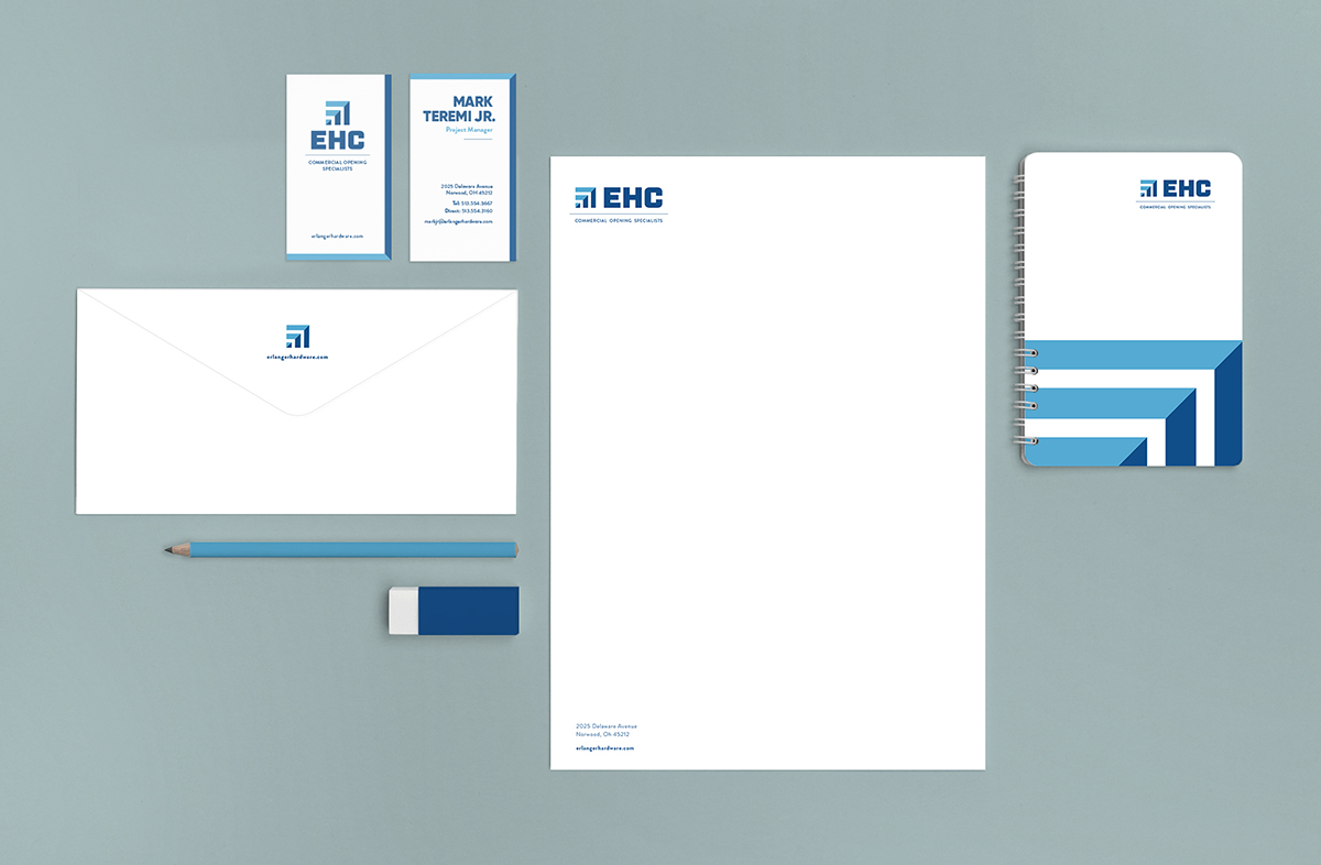 EHC, also known as Erlanger Hardware Consultants, is a well-established commercial doors and hardware supplier in the NKY/Cincinnati area. Their brand had become dated and they needed The Think Shop to help refresh it for a more modern look.